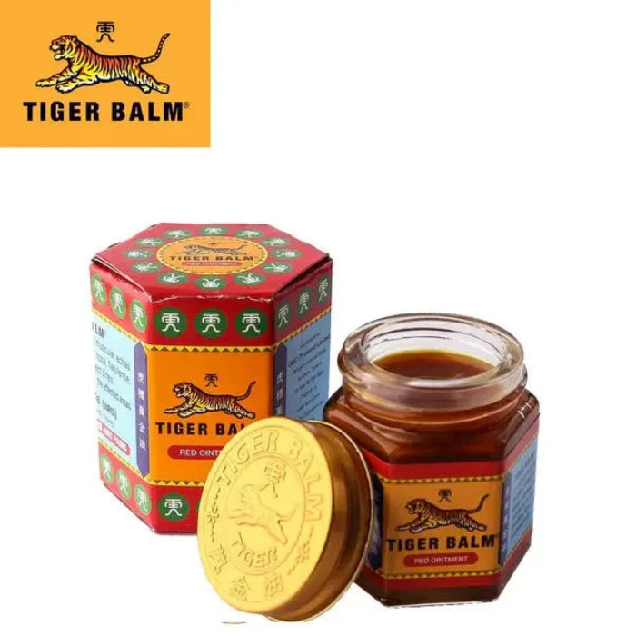 Bálsamo de Tigre Rojo. El Bálsamo de Tigre®es un producto auténtico de la farmacopea asiática, reconocido por sueficacia y rápida acción. Enriquecido con un 25% de alcanfor, este bálsamo penetra profundamente para aliviar el dolor muscular y articular, y despejar las vías respiratorias en caso de congestión nasal. Una solución rápida y eficaz El bálsamo rojo Tiger Balm® actúa casi al instante. Una vez aplicado, produce un calor calmante que relaja los músculos tensos, alivia el dolor y mejora la circulación sanguínea local. Para una alternativa menos intensa, descubra el bálsamo blanco Tiger Balm®. [[33]]] [[34]]] Composición del bálsamo rojo Tiger Balm®